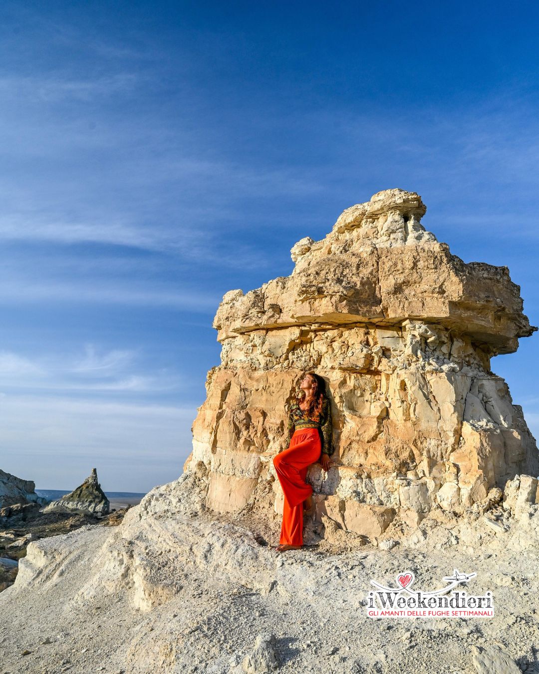 Da Moynaq, per visitare il Lago di Aral nel suo attuale aspetto, cioè quello più remoto, crudo e affascinante, servirà un fuoristrada. Sono necessari circa 100-130 km di sterrato per raggiungere la nuova linea di costa. I tour in 4×4 attraversano l’altopiano di Ustyurt, una distesa rocciosa scolpita da secoli di erosione, con pareti a picco e vallate spettacolari che sembrano uscite da un film di fantascienza.